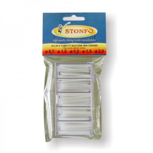 Mala kutija raznih veličina silikonskih cijevi, idealna za izradu ribolovnih instalacija i posebno za blokiranje užeta na perajama fiksnih plovaka.